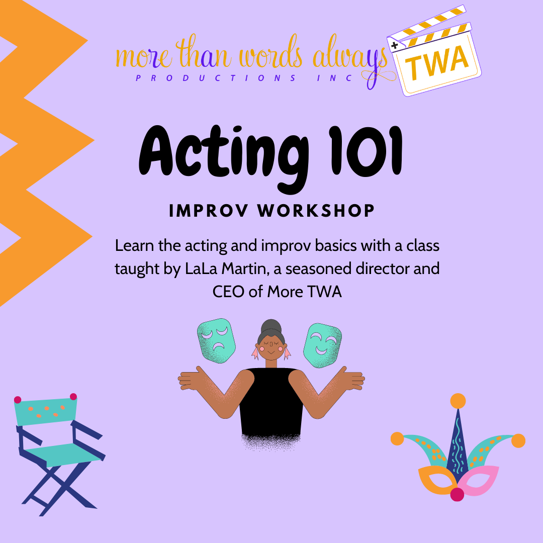 Come learn the basics of acting and improv with Director and CEO LaLa Martin. This class will teach acting techniques through different exercises and improv games. The workshop will strengthen an actor’s ability to stay in character and think quick on their feet while simultaneously improving confidence and public speaking skills.